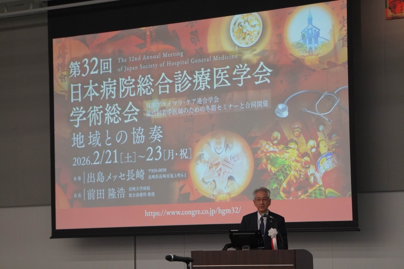 2026年2月21日(土)~23日(月・祝)に出島メッセ長崎にて第32回日本病院総合診療医学会学術総会を、長大総診主催で開催いたしました。おかげさまで盛会裡に終了いたしました。1,300名を超える多くの皆様にご参加・ご登録を賜り、心より御礼申し上げます。ご参加くださいました皆様をはじめ、運営にご協力くださいました関係各位に、厚く御礼申し上げます。
